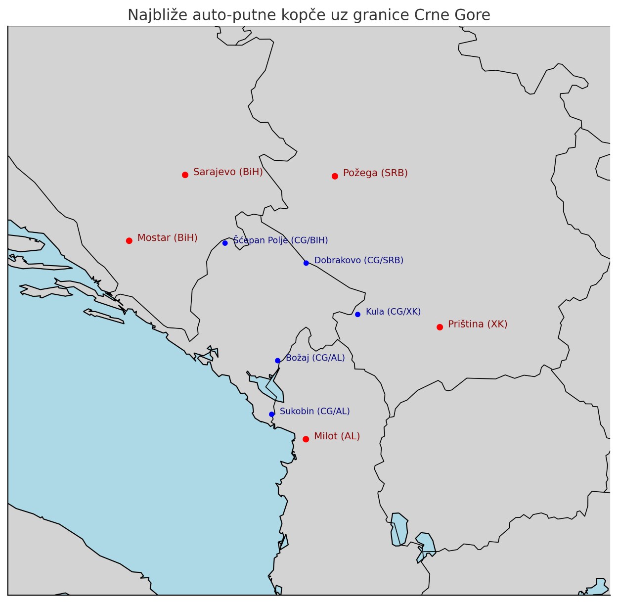 Portal Investitor analizira po državama – Srbiji, Bosni i Hercegovini, Albaniji i Kosovu – koje su najbliže završene dionice auto-puteva dostupne putnicima iz Crne Gore, gdje se one granično priključuju Crnoj Gori i kuda vode dalje (ka glavnim gradovima, međunarodnim koridorima ili drugim značajnim destinacijama). Takođe predstavljamo planove daljeg produžetka ovih auto-puteva prema crnogorskoj granici.