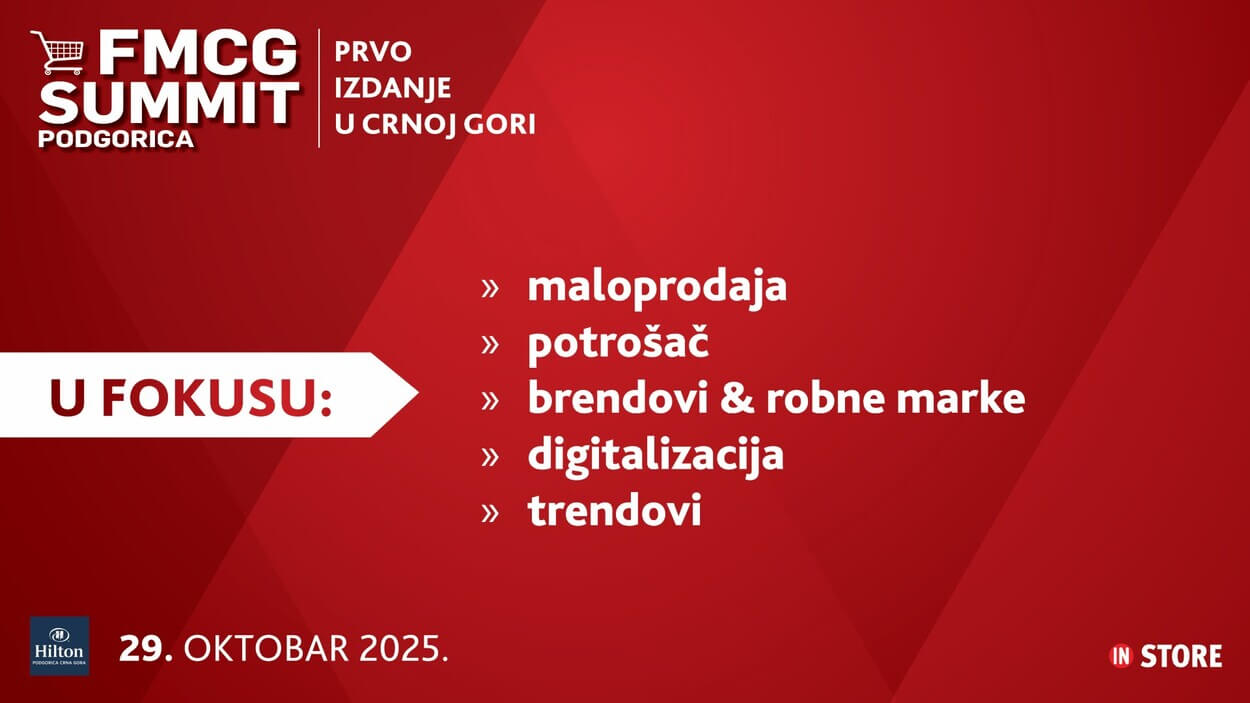 Prvi regionalni FMCG Summit Podgorica održaće se 29. oktobra 2025. godine u hotelu Hilton. Konferenciju organizuje InStore Media, nakon uspješnih izdanja u Zagrebu, Beogradu, Sarajevu i Skoplju.