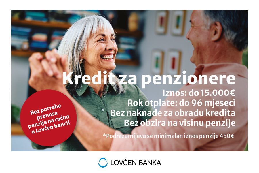 Lovćen banka pripremila je specijalnu ponudu za penzionere u vidu kredita koji se sada odobrava u iznosima do čak 15.000€, na rok otplate do 96 mjeseci.