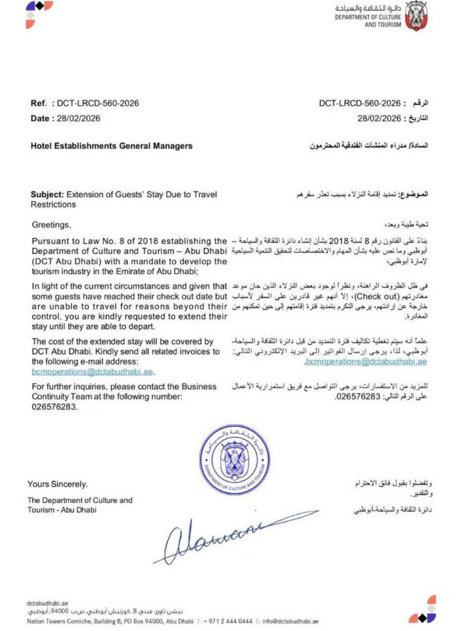 Kako prenose regionalni mediji i objave zvaničnika na društvenim mrežama, mjera se odnosi na putnike zaglavljene usljed nedavne eskalacije napetosti i napada iz Irana, koji su proteklih dana izazvali poremećaje u avio-saobraćaju.