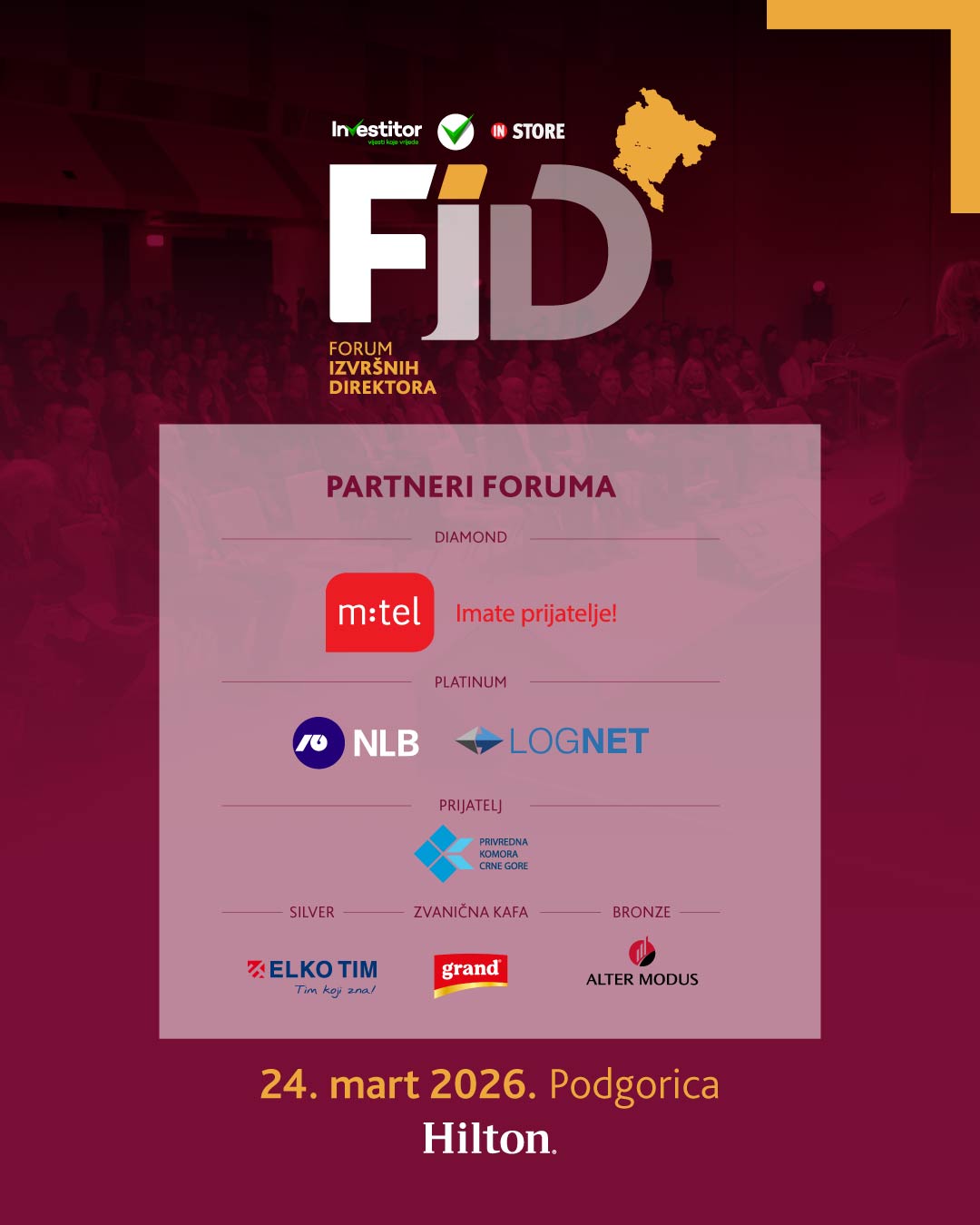 Za tri sedmice, 24. marta 2026. godine, u hotelu “Hilton” u Podgorici biće održan Forum izvršnih direktora – FID 2026 (www.fid-forum.me), najvažniji poslovni događaj godine u Crnoj Gori.